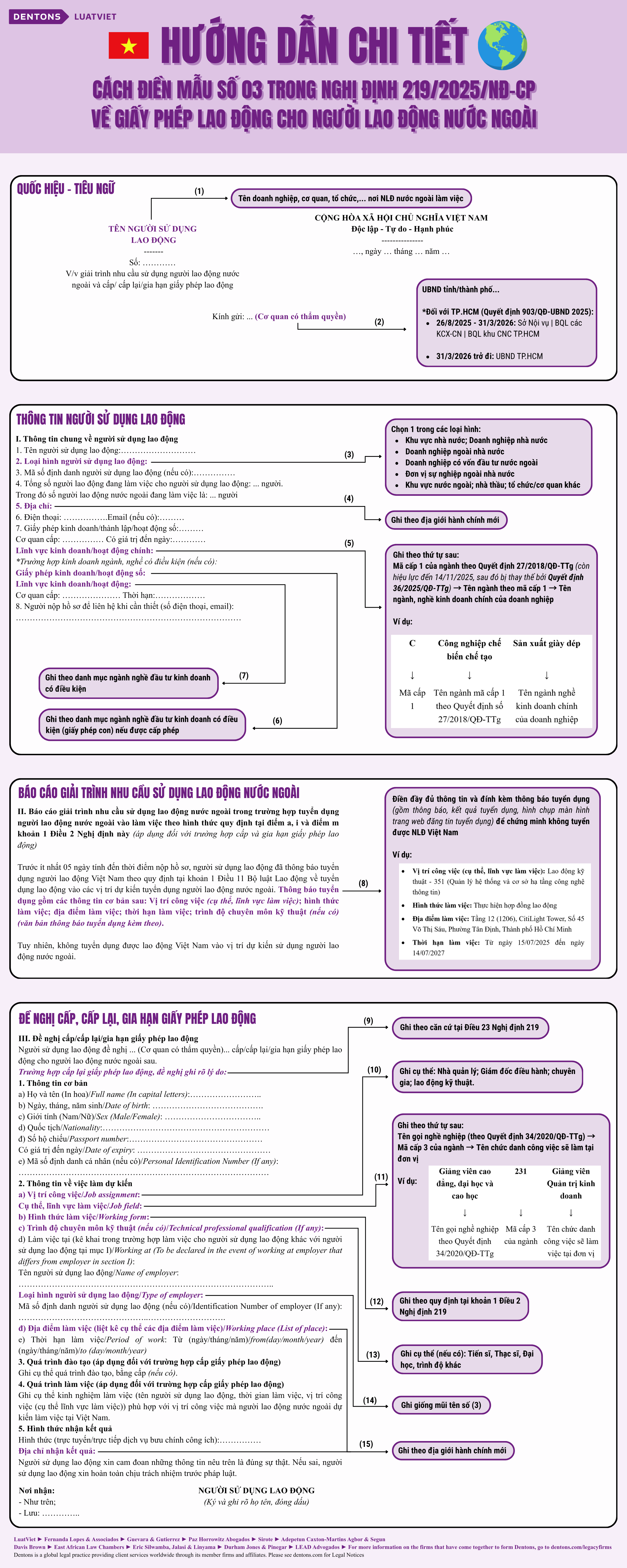 Ngày 07/8/2025, Chính phủ đã ban hành Nghị định 219/2025/NĐ-CP quy định về người lao động nước ngoài làm việc tại Việt Nam. Theo đó, khi nộp hồ sơ đề nghị cấp, cấp lại, gia hạn giấy phép lao động cho người nước ngoài, người sử dụng lao động cần lập văn bản đề nghị cấp, cấp lại, gia hạn giấy phép lao động và báo cáo giải trình nhu cầu sử dụng lao động nước ngoài (áp dụng với trường hợp cấp mới và gia hạn) theo Mẫu số 03 Phụ lục ban hành kèm theo Nghị định này. Dưới đây là hướng dẫn chi tiết cách điền Mẫu số 03: